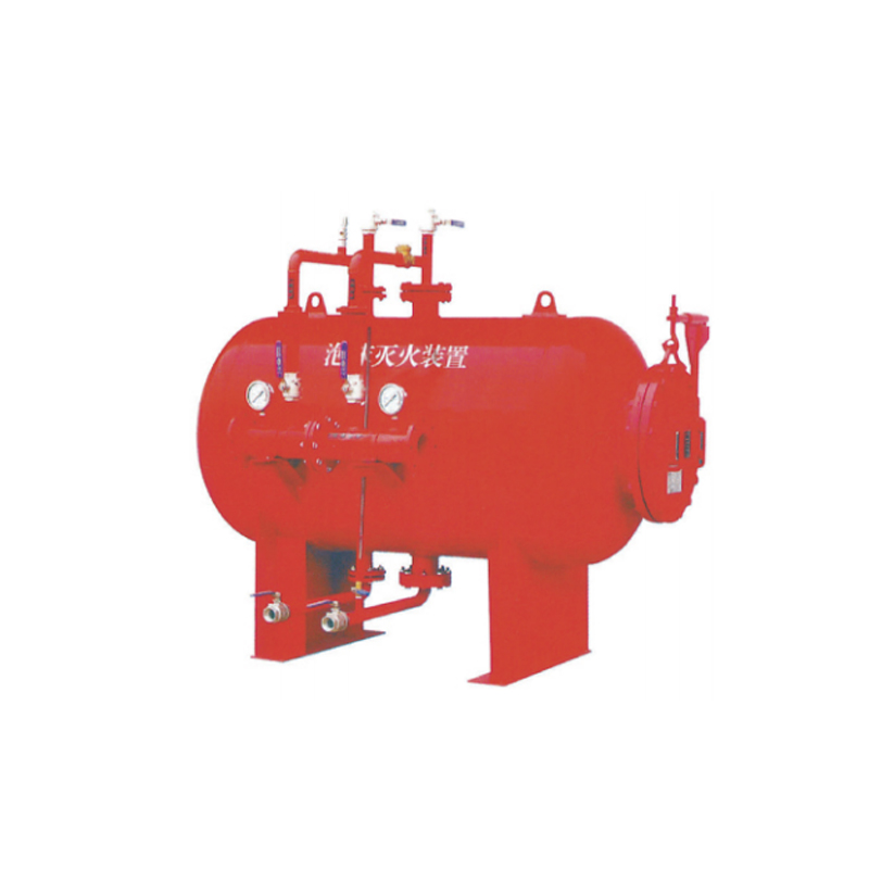 泡沫比例混合装置主要有罐体、胶囊、比例混合器、进水管路、出液管、排水阀、排污阀、安全阀、压力表组成。每个管路均安装有阀门、进水管线上装有压力表,胶囊装在罐体内,其内腔和罐腔是各自独立的。它是用来储存泡沫灭火剂,并通过压力式比例混合器的作用,将消防供水置换装置内储存的泡沫灭火剂,并与供水按一定的比例混合形成泡沫混合液的装置。按储罐的结构形式分为:卧室比例混合装置和立式比例混合装置;按比例混合器的个数分为:单比例混合器混合装置和多比例混合器,单比例混合器为常规的比例混合器。